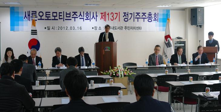 2012-10-16새론오토모티브㈜ 정기주주총회 개최의 건 3/16일 제13기 정기주주총회를 병천아우내 도선관에서 아래에 안건으로 개최 하였다. 제1호 의안 : 제13기 대차대조표, 손익계산서 및 이익잉여금처분계산서(안) 승인의 건 제2호 의안 : 정관 일부 ...